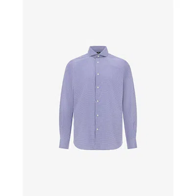 Kids' Navy Blue Houndstooth Regular-fit Cotton Shirt