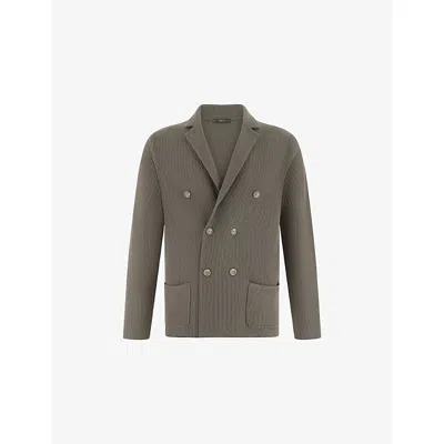 Mens Mud Double-breasted Knitted Cotton Jacket In Brown