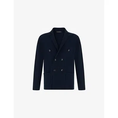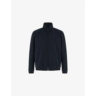 Mens Navy Blue Fine-knit Regular-fit Merino-wool Bomber Jacket