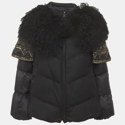 Pre-owned Sonia Black Wool Fur Trim Zip-up Puffer Jacket S