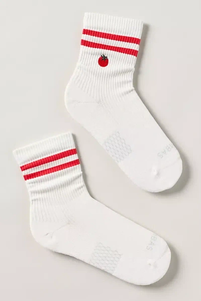 Embroidered Ruffle Rib Quarter Socks In Gray