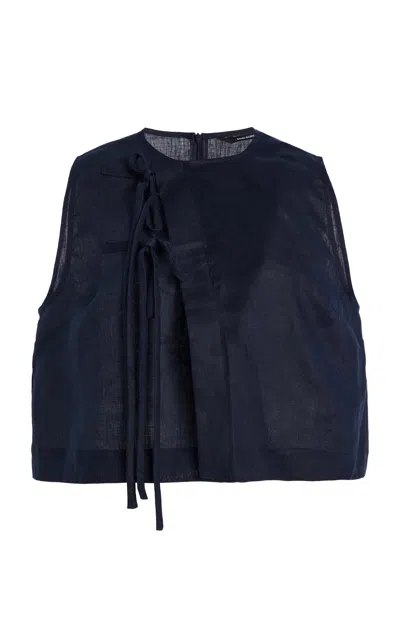 Leiden Tie-front Linen Top In Blue
