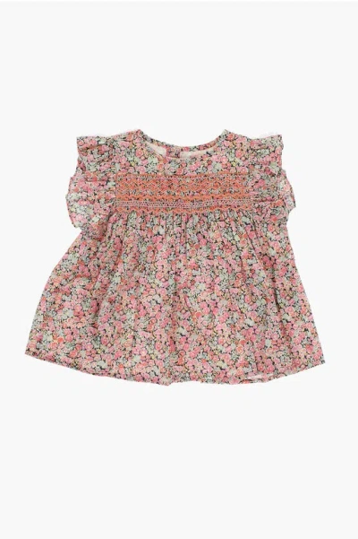 Floral-motif Cotton Celene Blouse With Ruffles In Multi