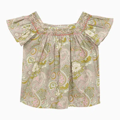 Girls Tess Floral Print Ruffled-trim Blouse In Beige