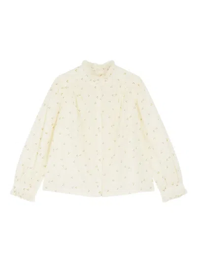 Kids' Jorja Blouse In Cotton Voile With Golden Embroidery In White