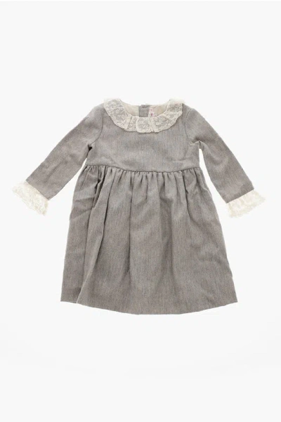 Wool Blend Flavie Shirt Dress With Macrame' Lace Details In Gray