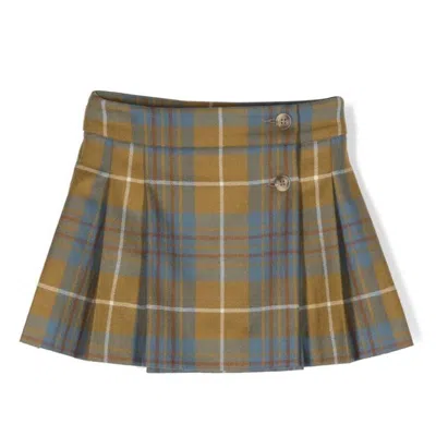 Kids Check Print Talissa Pleated Skirt In Green