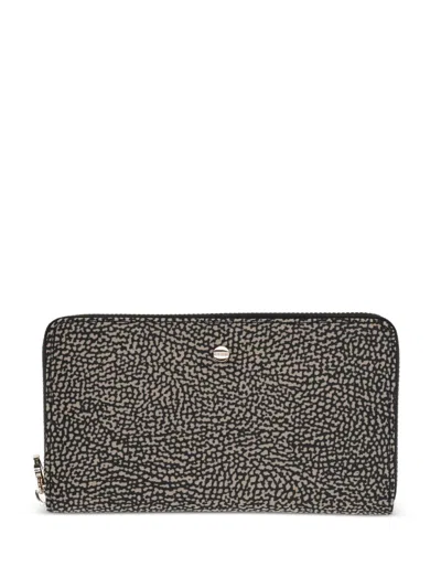 Zip Around Wallet With Op Motif In Op Naturale Nero