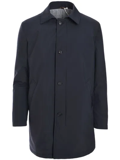Pinstripe Pattern Popeline Shirt With Cutaway Collar And Buttoned Cuffs In Blue