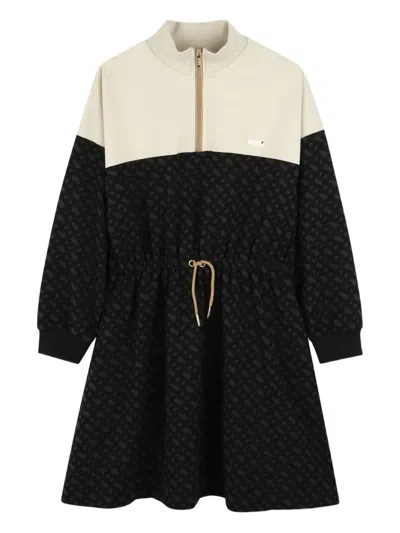 Monogram-print Half-zip Panelled Dress In Black