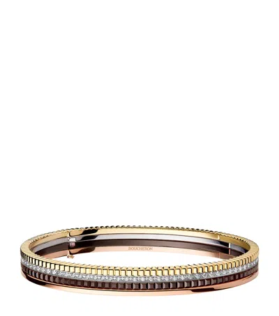 Mixed Gold And Diamond Quatre Bangle In Brown