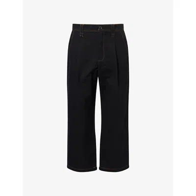 Mens Black Workwear Wide-leg Cotton Trousers Xl