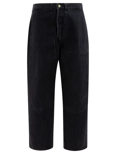 Mid-length Relaxed Fit Indigo Denim Trousers In Black