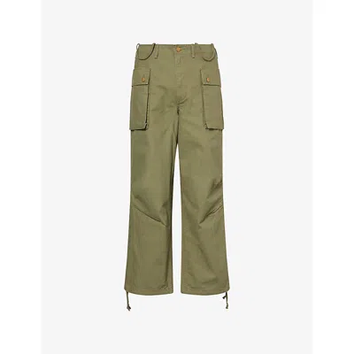 Mens Olive Flap-pocket Canvas Cotton Cargo Trousers In Green