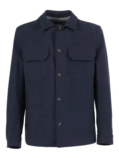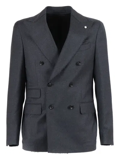 Double-breasted Wool-blend Jacket In Blue