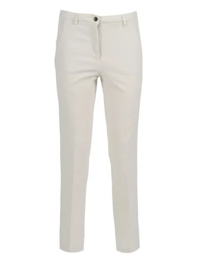 Beige Cotton Modal Trousers In White