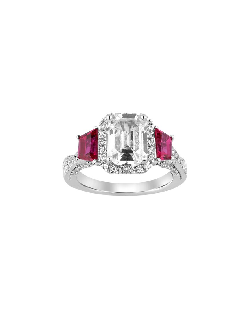 14k 4.40 Ct. Tw. Lab-grown Diamond & Ruby Bridal Ring In Metallic