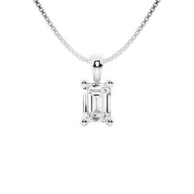1 Carat Emerald Lab Grown Diamond Solitaire Pendant In 14k White Gold