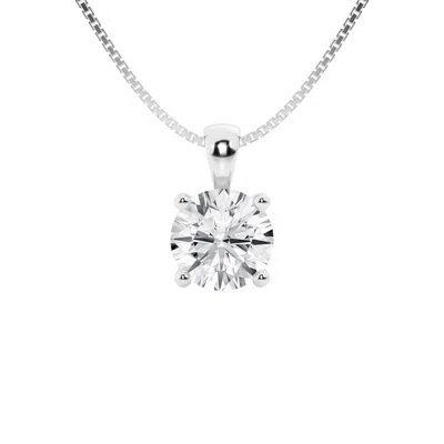 1 Carat Round Lab Grown Solitaire Diamond Necklace In Sterling Silver In Metallic