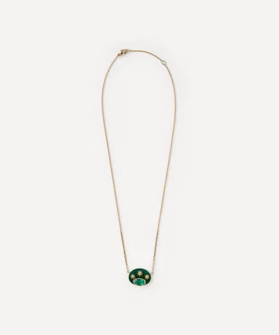 18ct Gold Emerald Stargaze Enamel Diamond Pendant Necklace In Multi