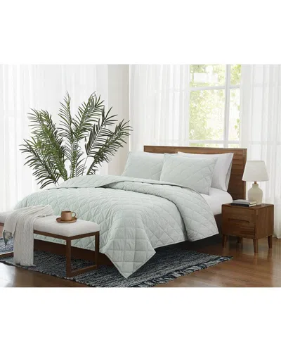 Oversized Cotton Percale 3pc Quilt Set In White