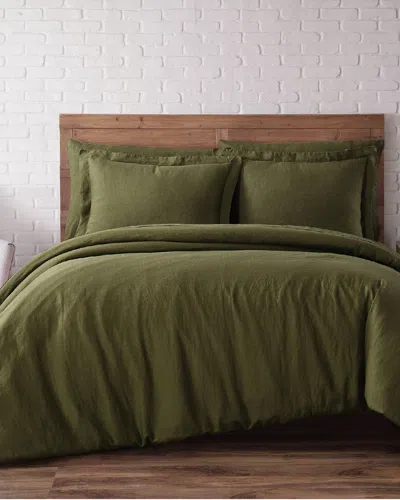 Matte Cotton Velvet Channel Stitch Quilt Set In Green