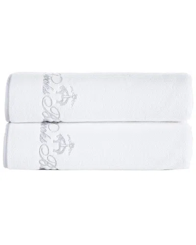 Fancy Border 2pc Bath Towels In Silver