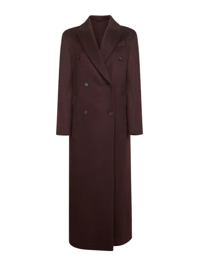 Burgundy Double Cashmere Beaver Coat With Monili In Brown