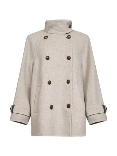 Grey Double Virgin Wool And Cashmere Cloth Caban In Neutral