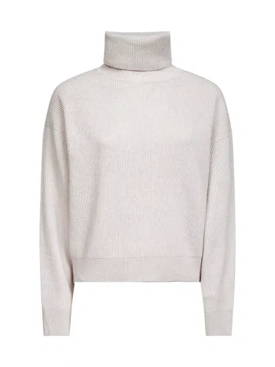 Grey English Rib Knit Wool Blend Turtleneck Sweater In White