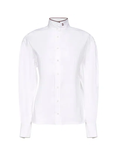 White Shiny Collar Detail Shirt<br/> In Animal Print