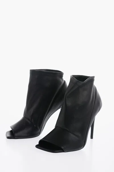 Leather Beauty Ankle Boots With Open Toe 10,5cm In Black