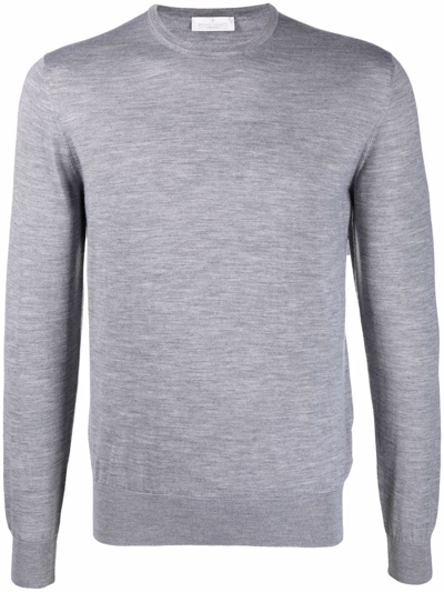 Solid Color Cashmere Crew-neck Sweater In Gray