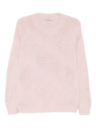 Crew Neck Openwork Pure Cashmere Sweater In Pink