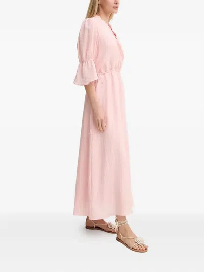 荷叶边细节束腰中长连衣裙
