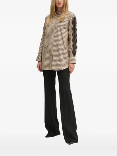 条纹蕾丝边饰衬衫