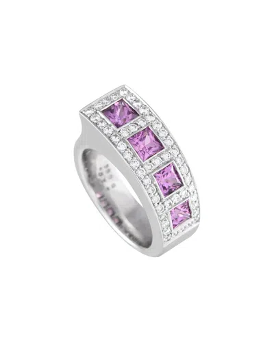 18k White Gold 0.65ct Diamond And Sapphire Ring Bu01-071124 In Pink