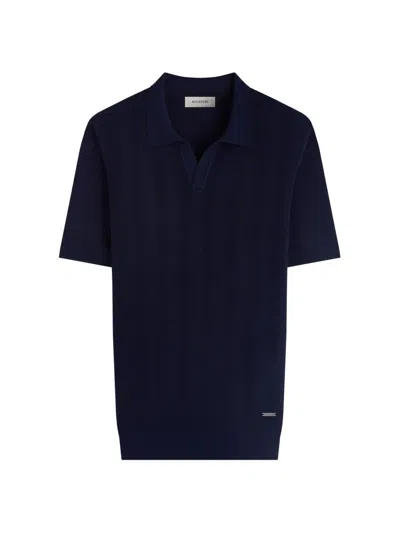 Men's Honeycomb-knit Cotton Short-sleeve Sweater In Blue