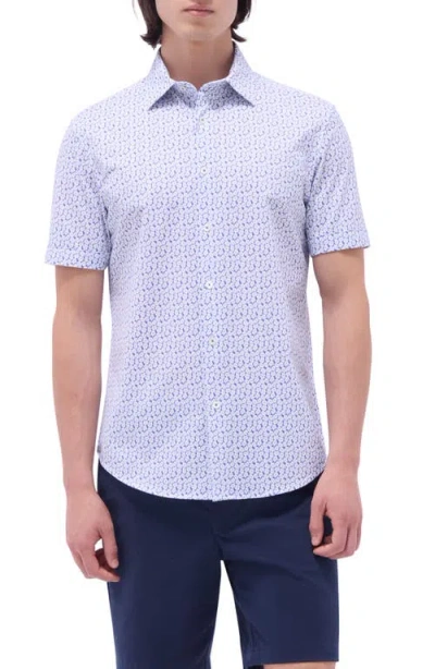 Orson Stretch Cotton Short Sleeve Button-up Shirt In Indigo