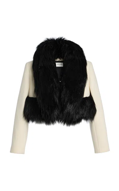Faux-fur Trimmed Wool Cropped Coat In Multi