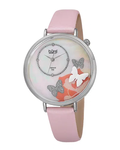Women's Genuine Patent Leather Diamond Watch In Burgundy
