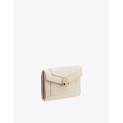 Womens Beige Serpenti Forever Compact Leather Wallet In Brown
