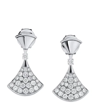 White Gold And Diamond Serpenti Viper Drop Earrings In Gray