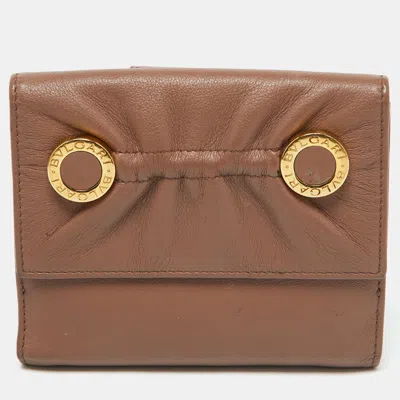 Pre-owned Brown Leather Logo Flap Compact Wallet