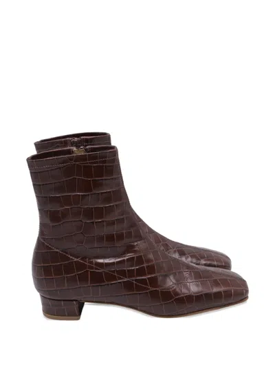 Pre-owned Croc-embossed Ankle Boots In Brown