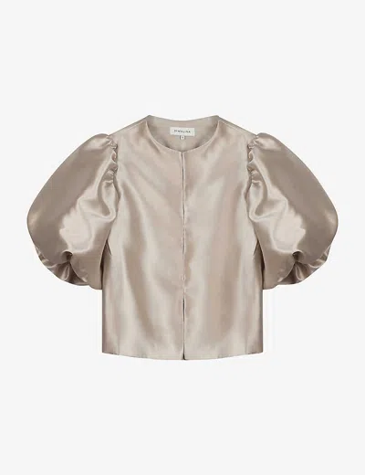 Womens Soft Beige Cleo Balloon-sleeve Satin Blouse In Nude (lingerie)
