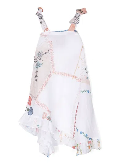 Kids' Floral-print Linen Dress In 白色