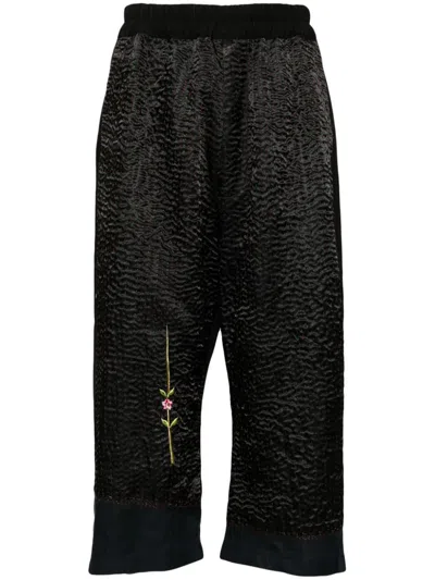 花卉刺绣露踝裤