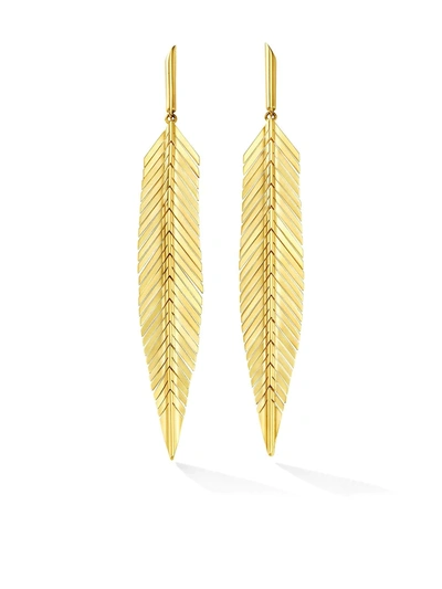 18k Yellow Gold Medium Feather Drop Earrings