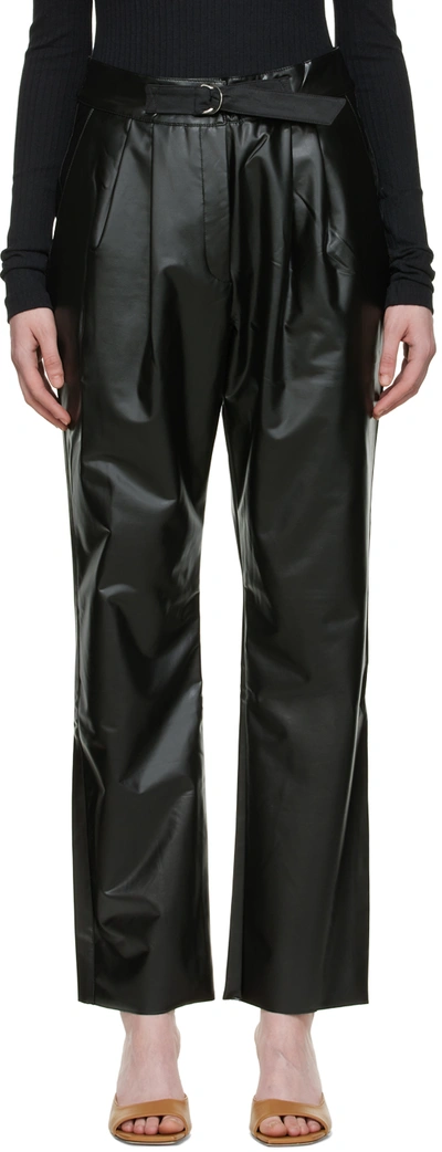 Belted Pleated Faux Leather Straight-leg Pants In Black